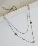 The Lindsay Silver Flower Charm Layered Necklace has a versatile design that can be easily worn! This trendy necklace features two layers of silver chains with flower charms and rhinestones. Style the Lindsay Necklace with any outfit to instantly upgrade your look! Flower Charms Rhinestones Layered Lobster Clasp with ExtenderLayer 1 | Length 7.5″Layer 2 | Length 6.5″Extender | Length 3″