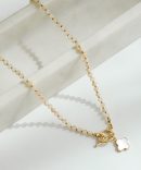 The Valerie Natural Beaded Necklace is exceptionally easy way to dress up any look! This dainty necklace features a beaded chain with a quatrefoil charm and toggle closure on the end. Style the Valerie Necklace with any outfit to instantly upgrade your look! Gold Plated Beaded Quatrefoil Charm Toggle Closure Lobster Clasp + ExtenderOne Size | Length 8” + 3″ Extender